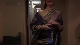 Indian Actress dare to walk naked in hotel with see through saree and guest see her