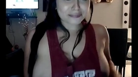 Amazing Latina camgirl wearing black nylon stockings and black skirt do real orgasm with dildo on we