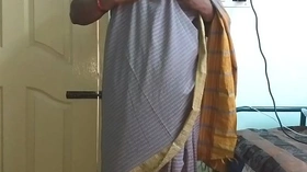 desi indian horny tamil telugu kannada malayalam hindi cheating wife vanitha wearing saree showing big boobs and shaved pussy press hard boobs press nip rubbing pussy masturbation